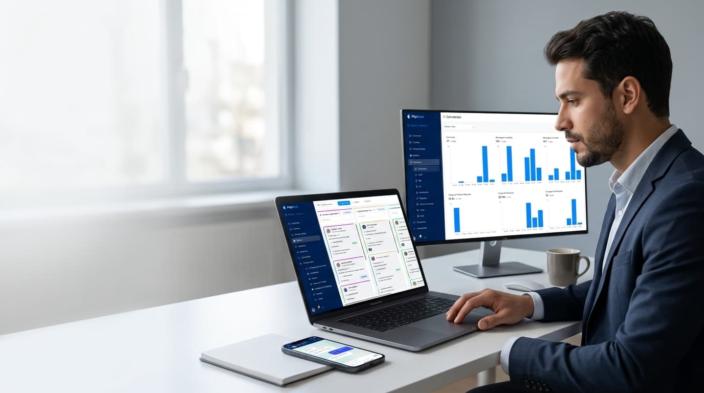 Campanhas, retomadas e respostas entram no mesmo fluxo para evitar lead perdido e pós-venda quebrado.